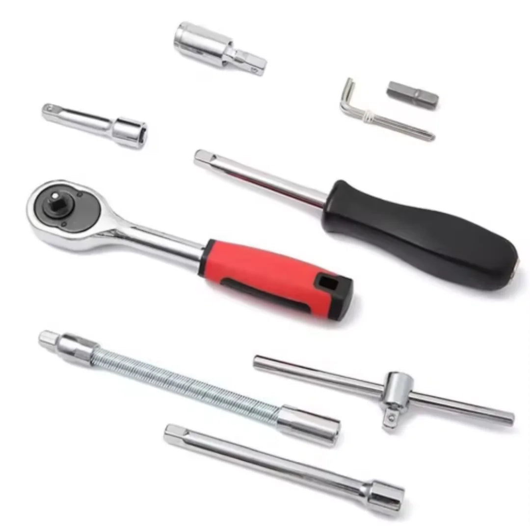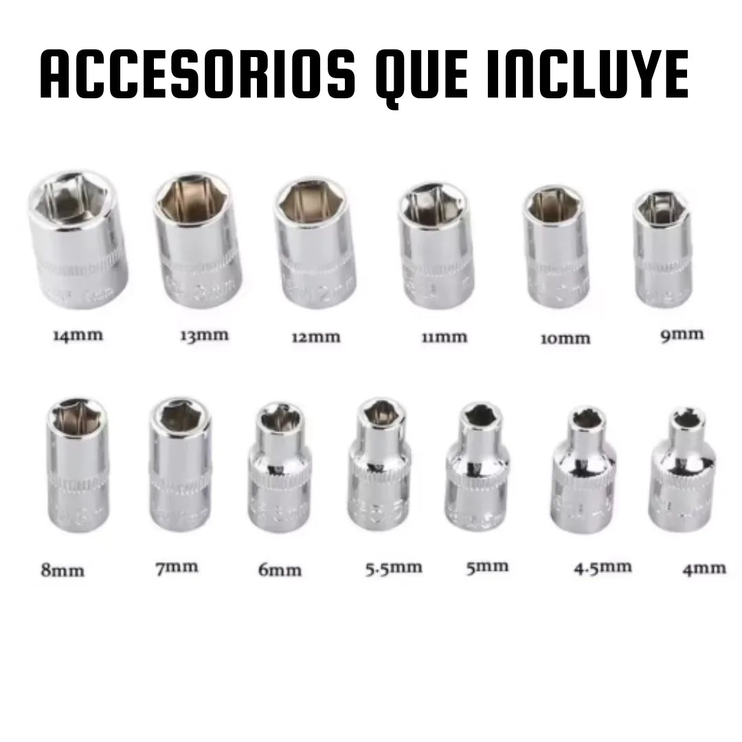 🔧 Llave de trinquete, adaptadores, varillas de extensión flexibles, llave Allen y más.