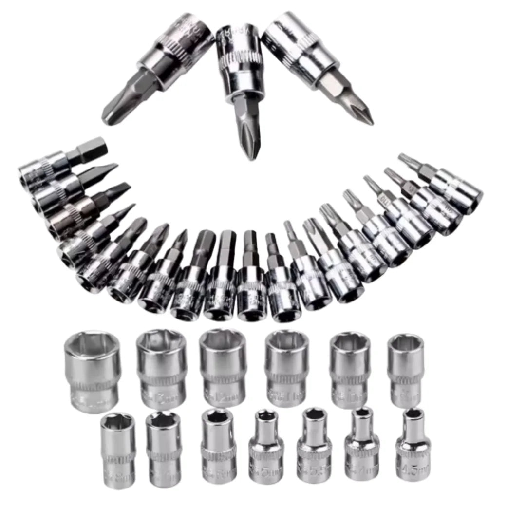 ✔️Versatilidad total:Incluye 46 herramientas esenciales, como mangas de diferentes especificaciones, adaptadores y varillas de extensión para todo tipo de trabajos.
