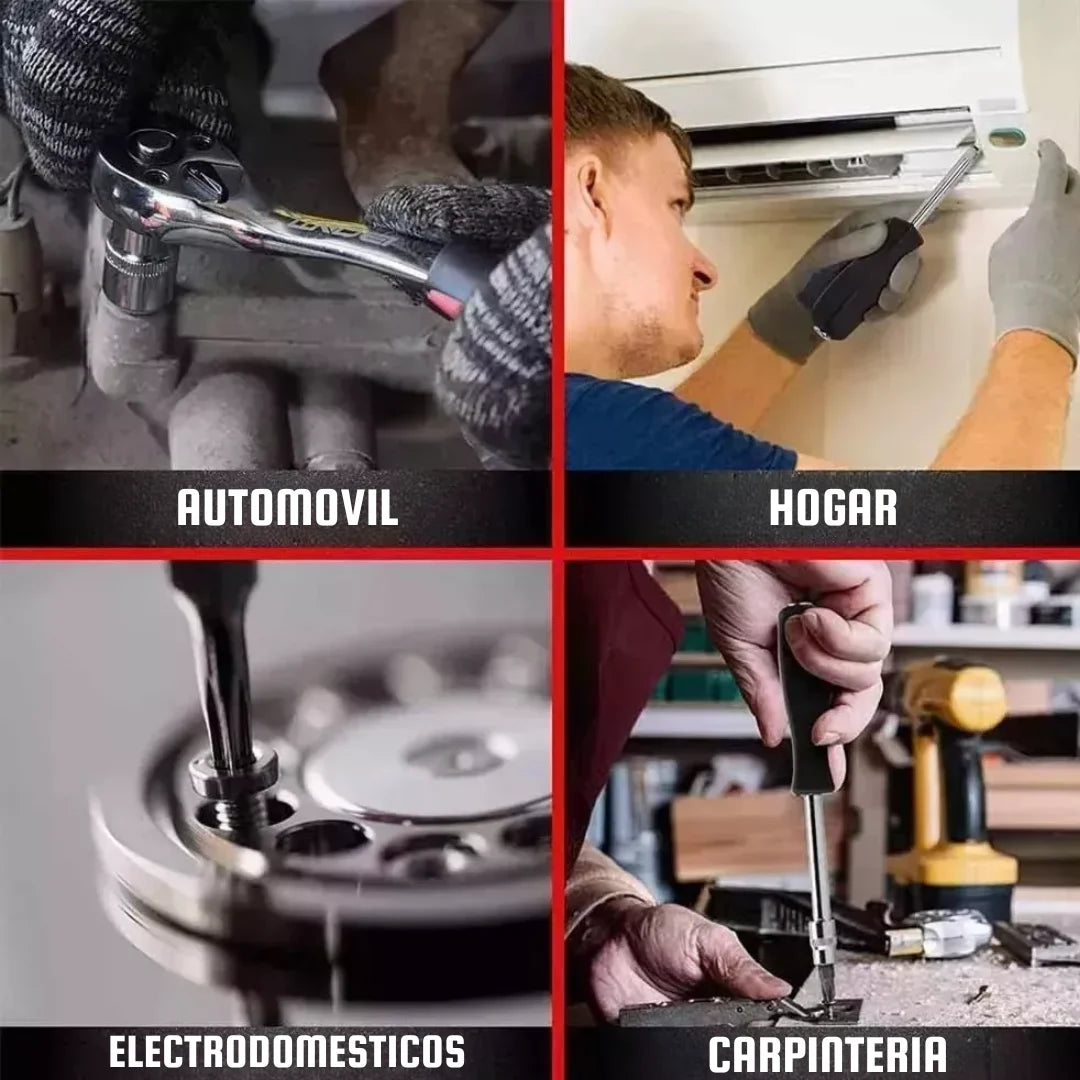 ✔️Eficiencia garantizada:Llave de trinquete de liberación rápida con botón fácil de usar y sistema reversible para trabajar sin esfuerzo.