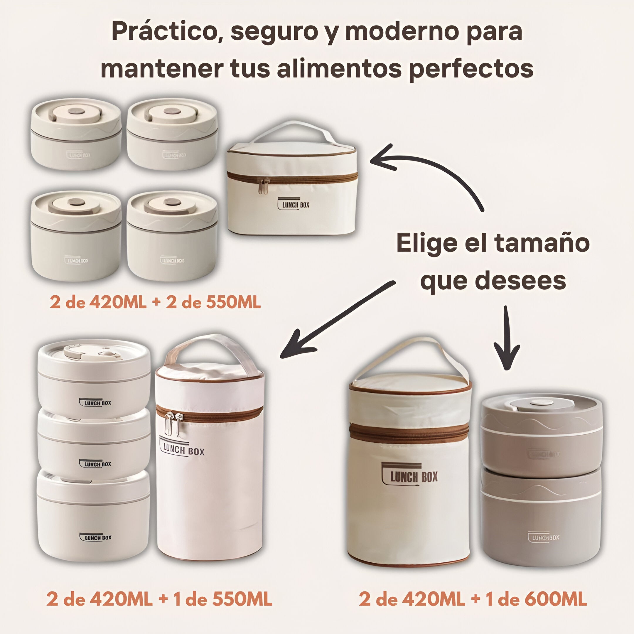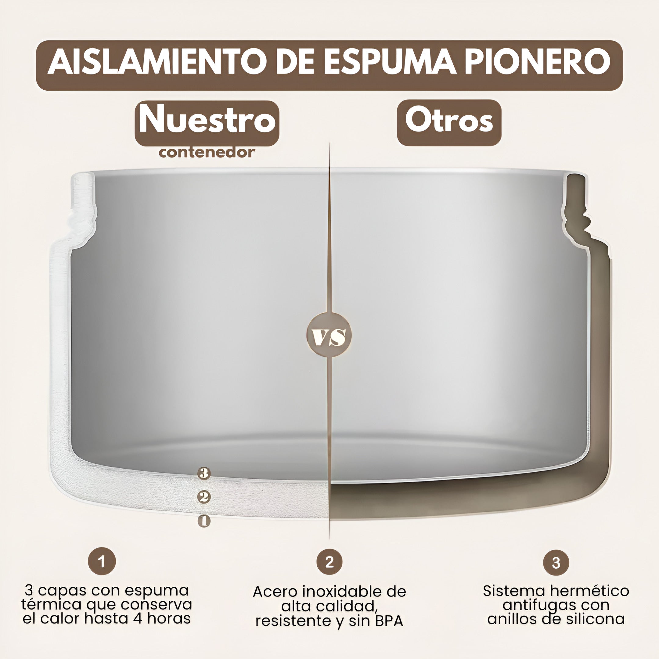 El sistema térmico de esta lonchera mantiene la temperatura de tus alimentos por horas, asegurando que disfrutes tu comida fresca, caliente o fría, con la misma calidad de casa.