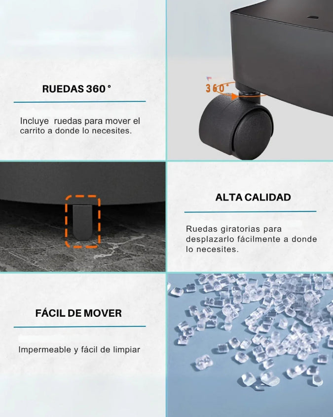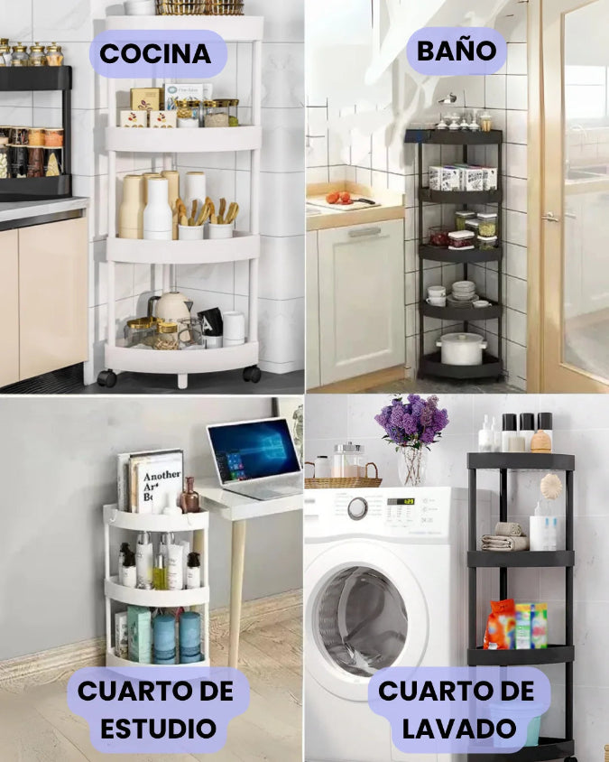 El Carrito Organizador Esquinero de 4 Niveles es la solución perfecta para mantener todo en orden sin ocupar espacio innecesario. Ideal para cocina, baño, cuarto de lavado o dormitorio.