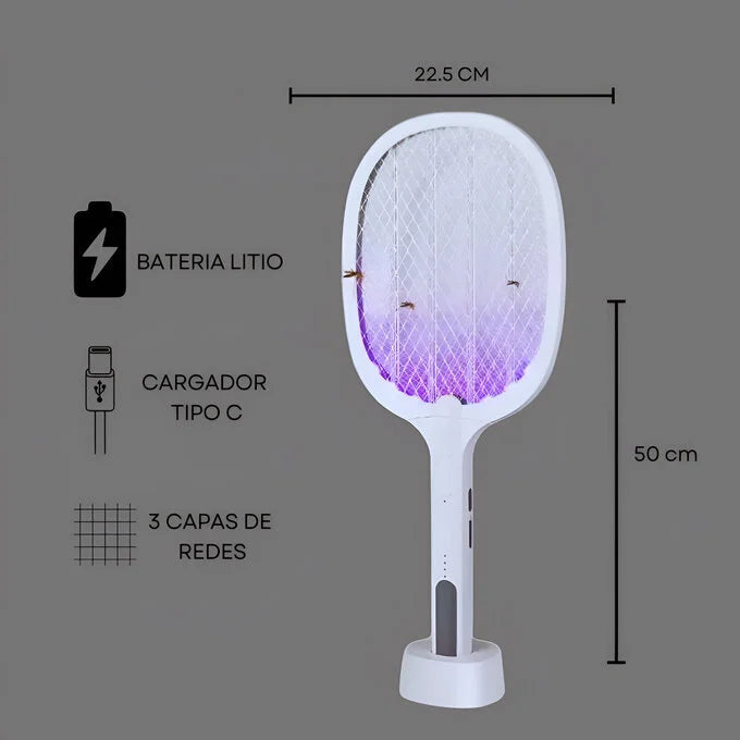 - Modo raqueta: Empuñadura ergonómica para cazar insectos de manera fácil y efectiva.