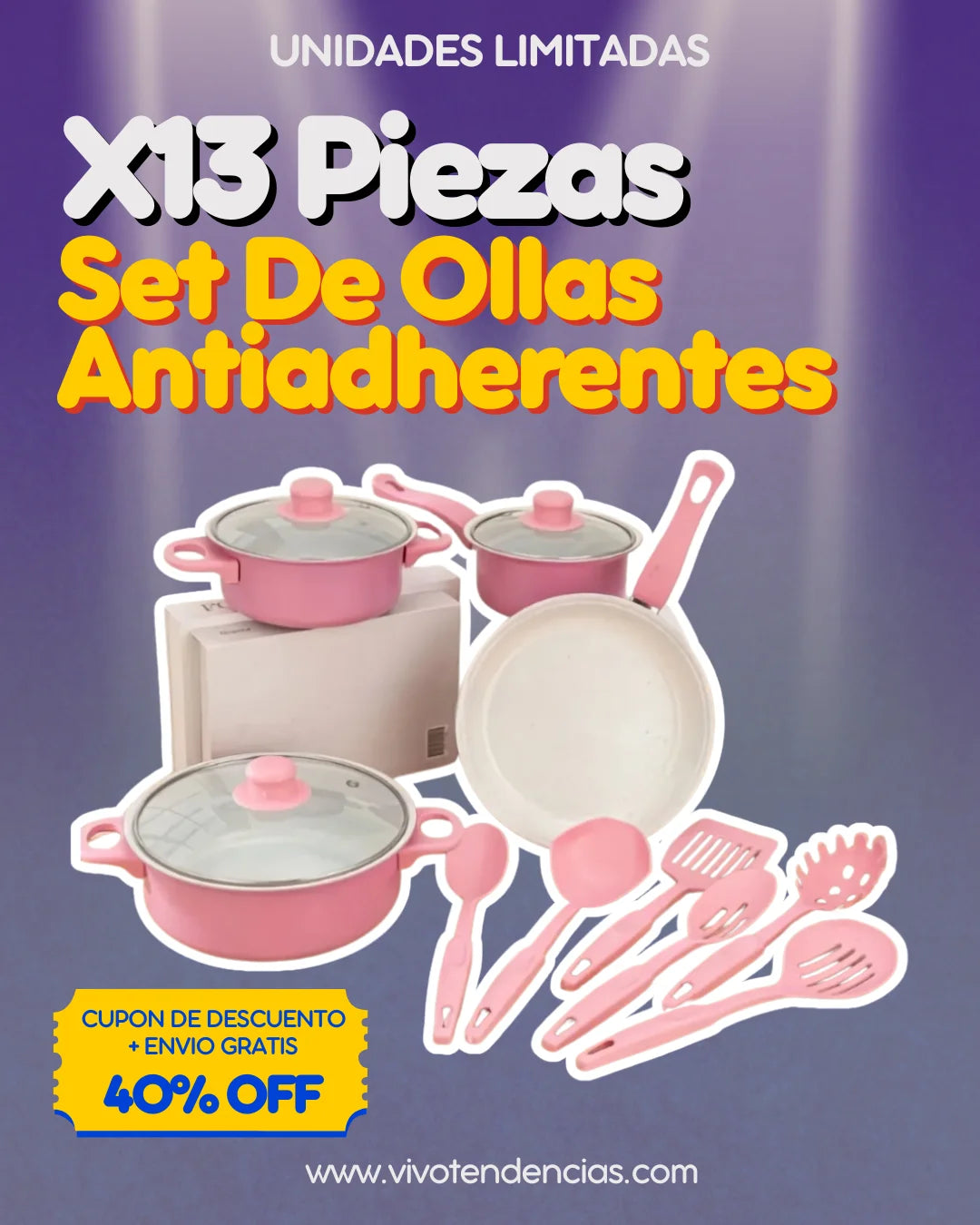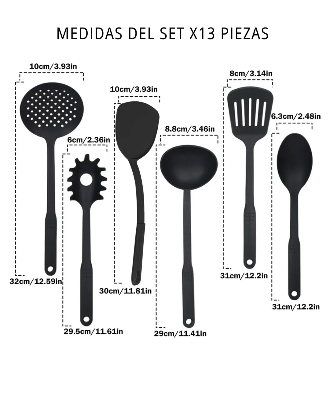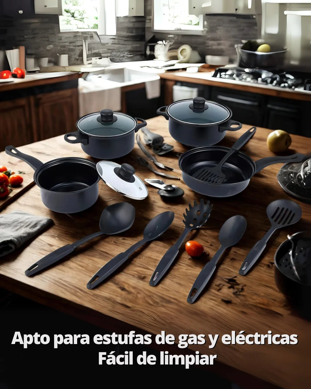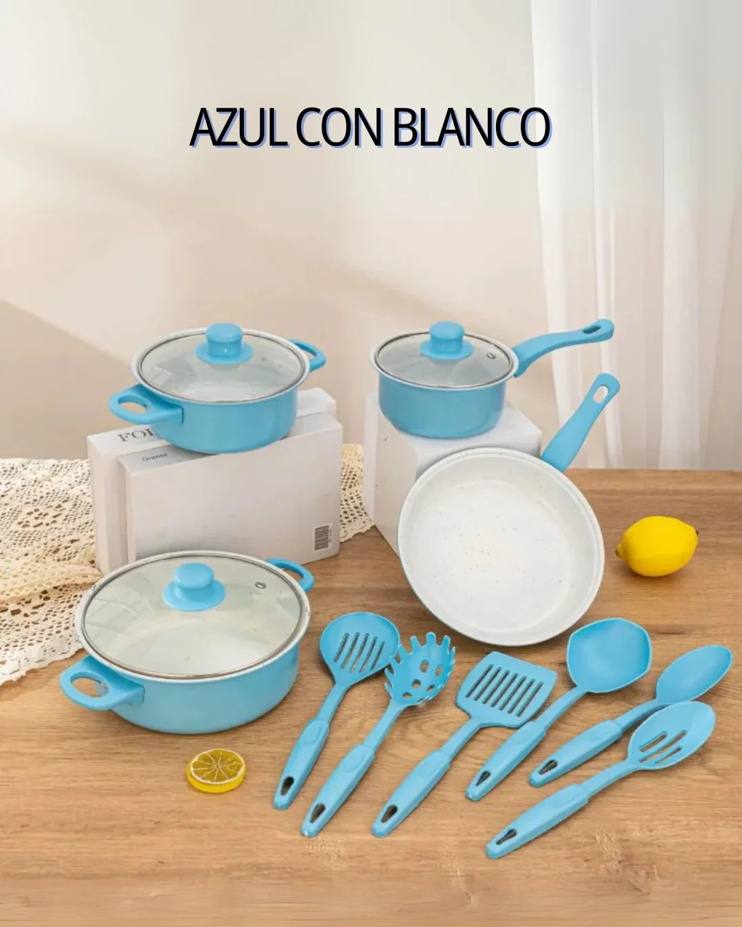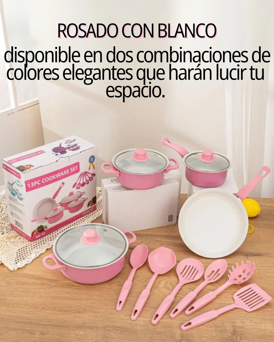 SET 13 PIEZAS ORGANIZADOR OLLAS ANTIADHERENTE + Utensilios de Cocina