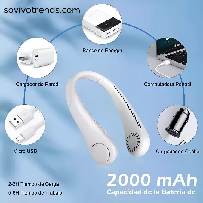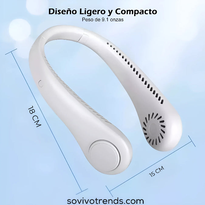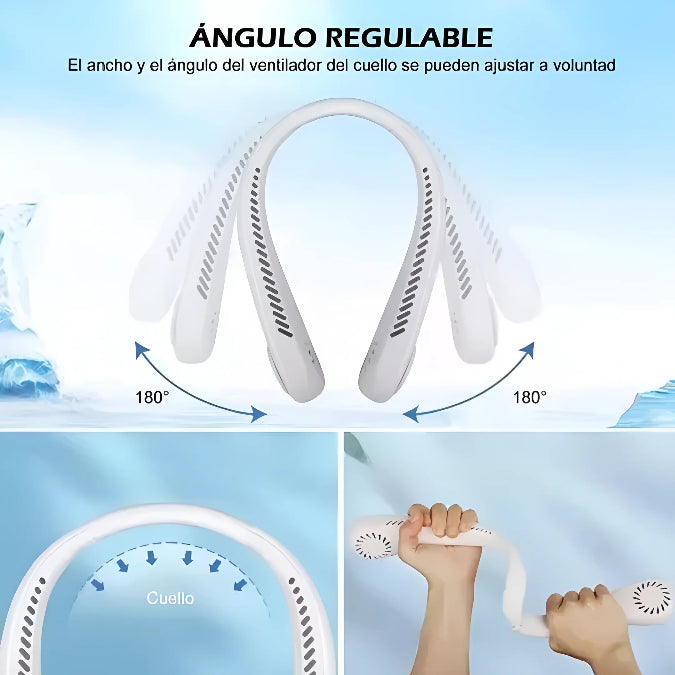 • Ventilador portátil para cuello: El dispositivo principal, ligero y ergonómico, listo para usar.