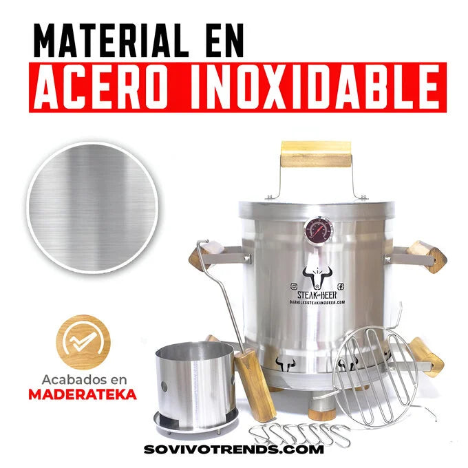 Descubre la comodidad y versatilidad del Mini Asador Barril, diseñado especialmente para quienes aman disfrutar de deliciosos asados en apartamentos, terrazas o espacios pequeños. 🏢🍖 Su diseño compacto y funcional combina la resistencia del acero inoxidable 🛡️ con terminados de madera teka 🌳, ofreciendo un estilo elegante y duradero.