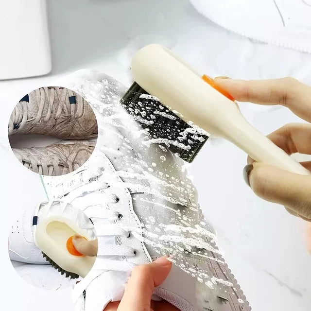 nuestro cepillo para zapatos con dispensador tiene cerdas súper suaves y densas, es perfecto para limpiar zapatos, ropa, y no daña la tela