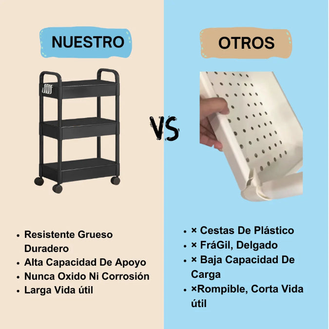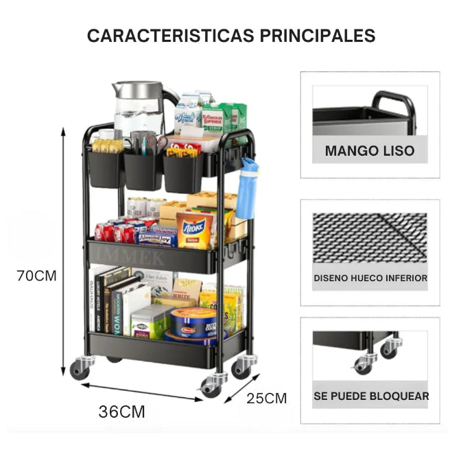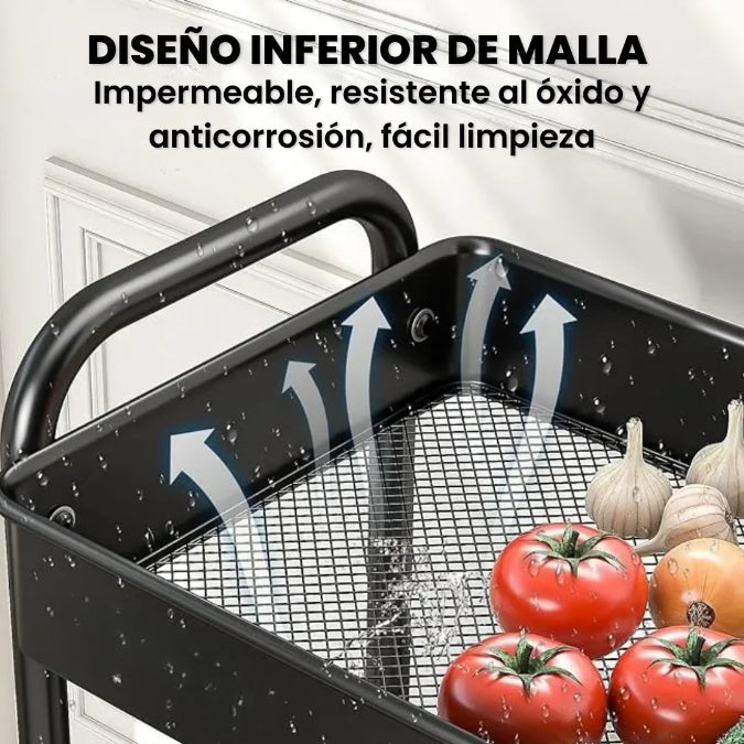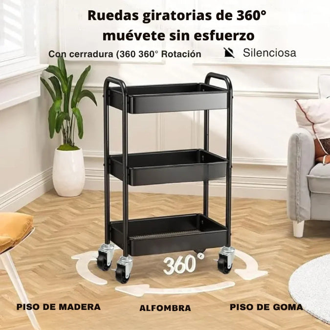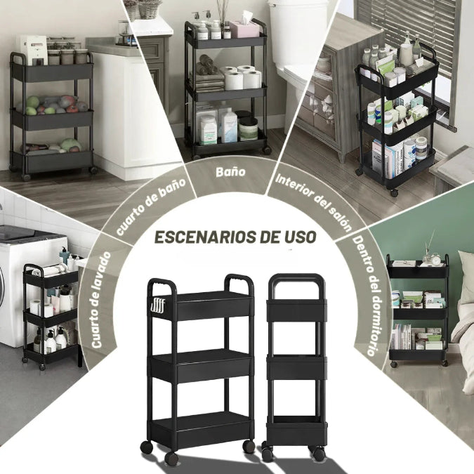 Organiza tu hogar sin esfuerzo! Este práctico carrito es ligero, resistente y fácil de mover gracias a sus ruedas giratorias y bloqueables. Ideal para la cocina, baño o sala, su diseño versátil se adapta a cualquier espacio.