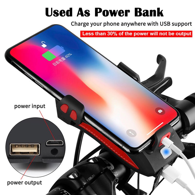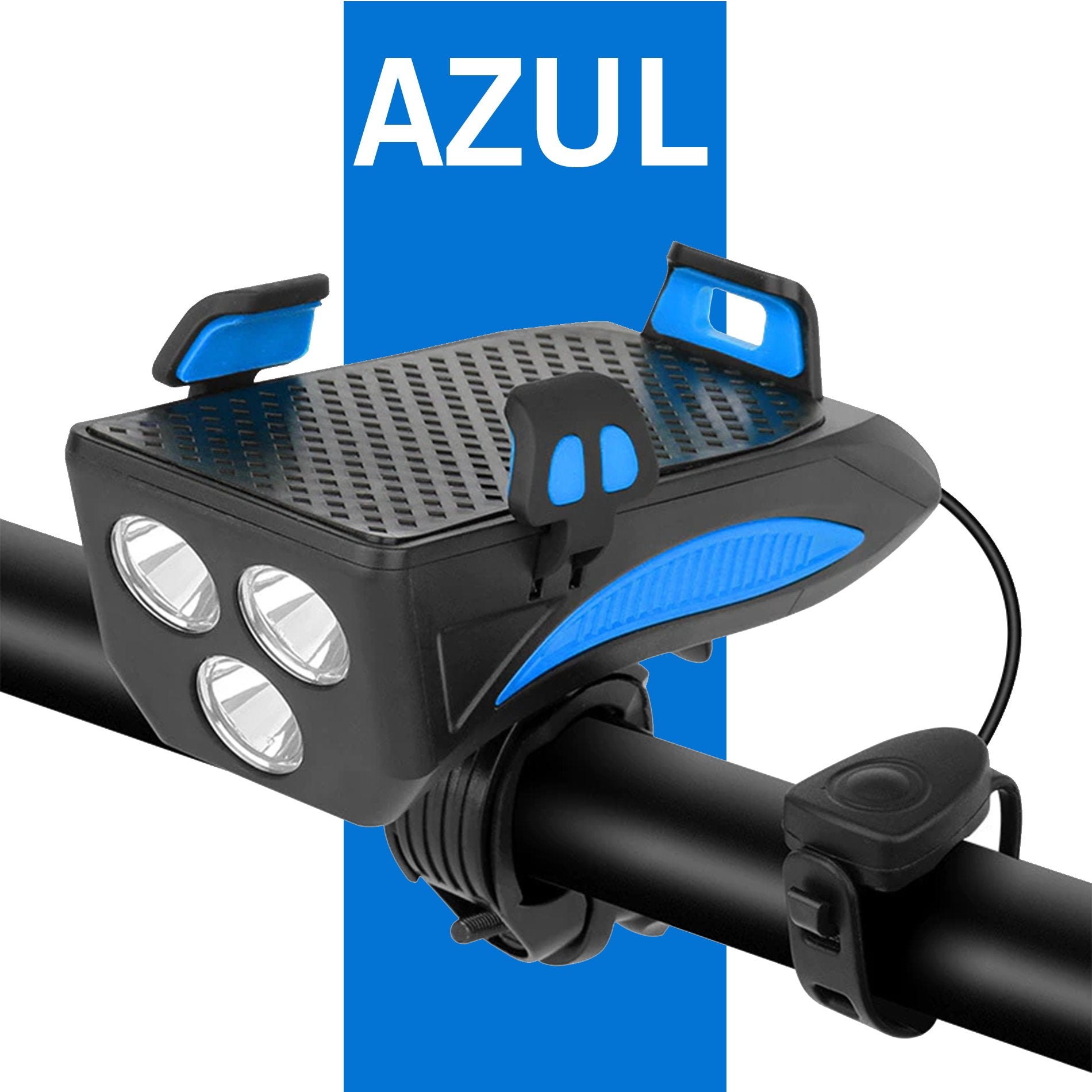 TRANSITA SIEMPRE CON TU LINTERNA 4 EN 1 CON LAMPARA DE BOCINA, FARO DE BICICLETA, SOPORTE PARA TELEFONO Y POWERBANK INCORPORADA