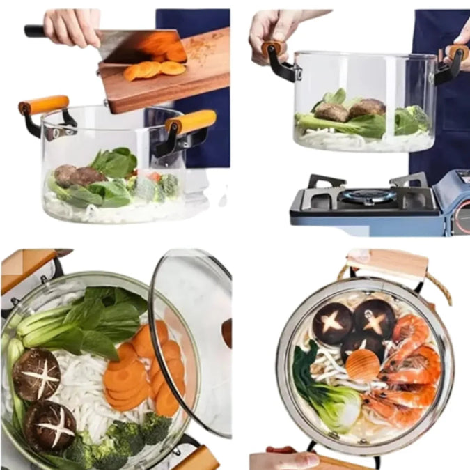 La olla de vidrio templado es la aliada perfecta para tu cocina: resistente al calor, fácil de limpiar y 100% saludable porque no guarda olores ni sabores. Con su diseño transparente podrás ver cómo se cocinan tus recetas sin destapar, conservando todo el sabor y los nutrientes.
